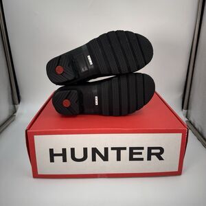 The Hunter Women's Original Short Boot in Black Matte is a stylish and functional rain boot designed for casual occasions. With a pull-on closure and waterproof features, this boot is perfect for keeping dry in wet weather. Made with a durable rubber outsole and upper, this boot offers comfort and support for everyday wear. The classic black color and solid pattern make it versatile for any outfit, while the Hunter brand ensures quality and reliability. Ideal for women looking for a practical and fashionable footwear option. New in box. Please refer to pictures for details and condition.
