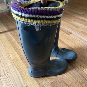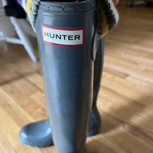 Hunter Women's Original Tall Gloss Rain Boots Gray with Leg Warmers Gray US 7.