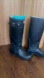 Hunter brand tall rain boots in black+ teal Hunter socks included. Gently used condition. US W8/ EU 39, fits more like a 8.5. Boots originally $175, socks $38