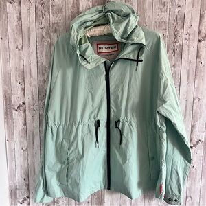 Hunter Women’s Packable Full Zip Raincoat Size Large Mint Green