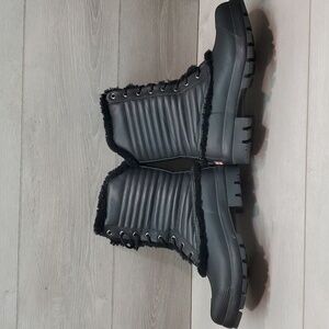 Hunter Womens Patent Pac Tall Rubber Sheepskin inside Boots shoes sz 10