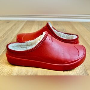 Hunter Women’s Red Fleece Lined Slip On Clogs Size 7 in Great Condition