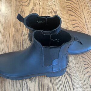 Used, good condition, black matte, women's slim fit Chelsea rain boot, smoke free home