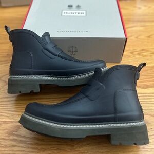 I wore these twice. I had sized up but didn't need to. They're really great boots. Very stylish & practical, especially for waterproof boots.Hunter Women's Refined Stitch Loafer Boots in Navy Blue. Size Women's 9.