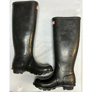 Hunter Womens Rubber Rain BOOTS Original Tall Customer Return BLACK GLOSS SIZE 5