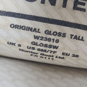 Discover the perfect combination of style and function with these sky blue original gloss tall rain boots by Hunter, women's US size 7. These tall boots are designed to provide superior water protection and have a glossy finish for an elegant look. The boots feature a polyester lining to keep your feet warm and dry in wet conditions. Adjustable calf strap for maximum comfort. Defy the elements in style when you wear this waterproof rain boot! Make them yours today and stay dry all year round!