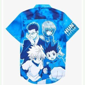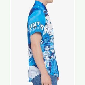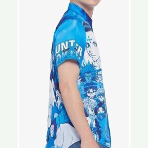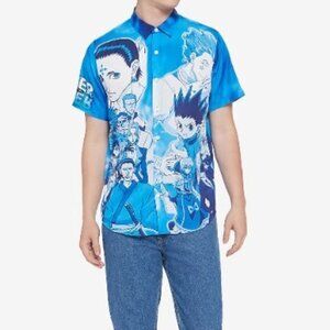 Can't choose a favorite from Hunter x Hunter? Wear them all with this blue button-up that features characters from the series in a blue tone with logo on the sleeve.