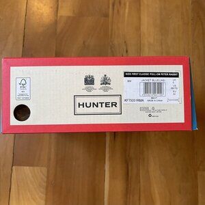 Hunter X Peter Rabbit rain boots. Size 5 UK / 6US. Will ship with box. New in Box. Blue boots with Peter Rabbit print throughout the boots.