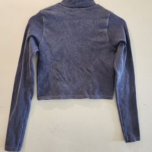 Hunter and Brown, Long Sleeved, "Denim Look," Turtle Neck, Crop Top Size Medium