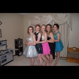 Homecoming or short prom dress. The top is heavily beaded. A size 8, but could fit someone smaller. Always willing to negotiate.