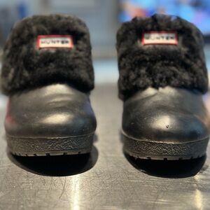 Perfect, gently used, black Hunter clogs with warm/fuzzy inside. Size on shoe is an 8, but they fit more like a 7.5
