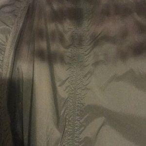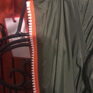 Brand new women hunter jacket Size medium color hunter green inside orange zipper white with orange trimming ruffled arms