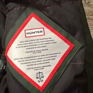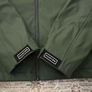 Hunter jacket in beautiful military green. Fleece line inside of hood.