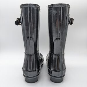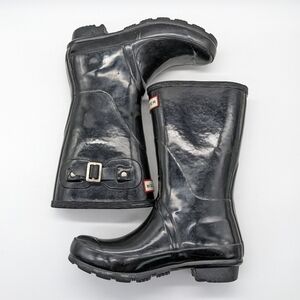 Hunter original tall black rain boot 5. Some scuffing and all over wear, also one buckle is broken (see photo)