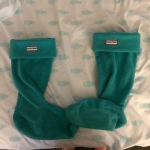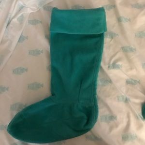 Tiffany blue fleece hunter rain boot socks. Never worn. Size 5-7 female