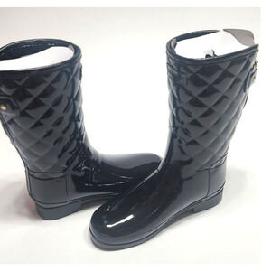 Hunter Refined High Gloss Diamond Quilted Short Waterproof Rain Boots are crafted in a slim silhouette with an adjustable strap at the back.