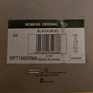Women's original tall Hunter boots in black. These have never been worn and are new, in the original box.