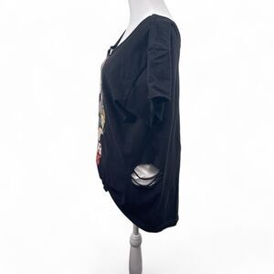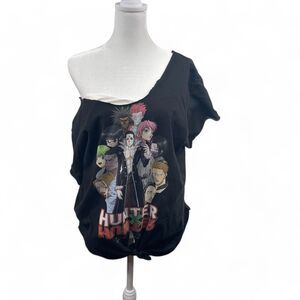 Hunter x Hunter Black Women T-shirt L Reworked Cut Out Off Shoulder Anime Tie