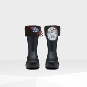 Hunter Kids Boot Welly Fleece Socks Spaceship Manmoon Black Space Rocket Astronaut Moon Size XL US 4 -6K