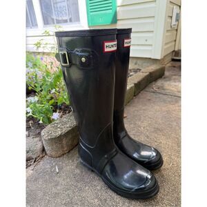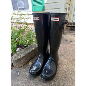 Hunter Original Gloss Tall Black Boots Women W23616 Size 7