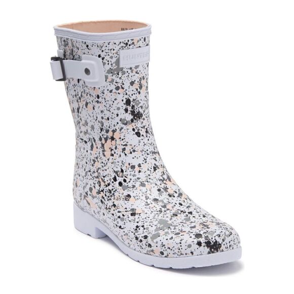 This rain boot from Hunter is waterproof to keep your feet dry on those rainy days while featuring a fun particle paint splatter print.
