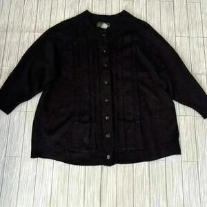 Size 1X. Front pockets and front buttons. Vintage cable knit cardigan. Measurements pit to pit 27”, length 29”, sleeves 24”