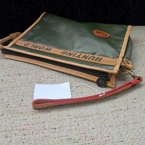 Hunting World Cosmetic Bag Pouch Clutch Bag Green/Tan Leather Make Up Bag France