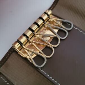 Huning Word Key Ring Hooks Holder Case Wallet Logo Brown Trifold Designer made Italy