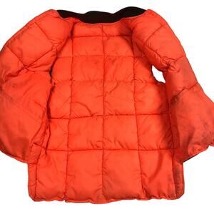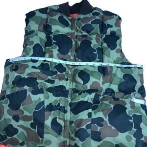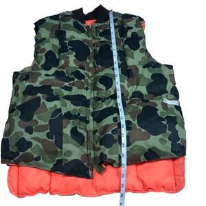 Get ready for your next outdoor adventure with this hunting camouflage quilted vest! This vest is perfect for adding an extra layer of warmth and concealment. Please note that it is pre-owned and has some stains on the orange inner lining. Please review all photos carefully before purchasing.
