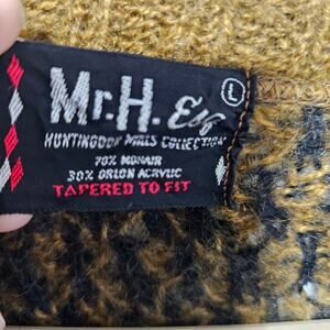 Huntingdon Mills Mohair Sweater Vintage Black Brown V-neck Women's Size Large