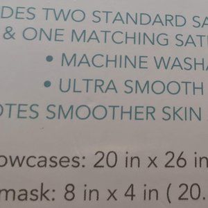 This set of 2 pillowcases & an eye mask from Huntington Home is brand new and still in the original box. The pillowcases are a standard size 20" x 26". The eye mask is one size. The color of this set is similar to a cream color.