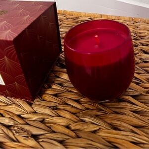 Bring the cozy, warm aroma of autumn into your space with this Huntington Home Spiced Cider candle. This soy-blend scented candle comes in a stunning red glass jar and is beautifully packaged, making it a perfect gift or addition to your home décor.