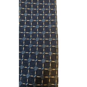Huntington Men's Tie Blue White Textured Geometric Squares Pure Silk Made U.S.A.