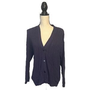 Huntington Ridge Blue Cable Knit Vintage Button Up Cardigan Sweater Large
