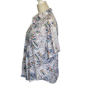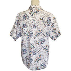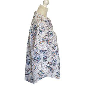 Huntington Ridge Vtg Women's Top L Nautical White Short Sleeve Boats Button Fron