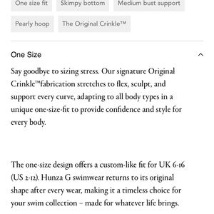 Hunza G bikini. Pale yellow color with tortoise ring. Great condition and good quality. It is a “one size.” Third picture shows sizing from their website.