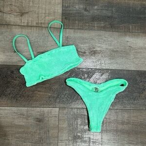 Hunza G Bikini Set Lime Green Neon Bright Crinkle Stretch Swimsuit