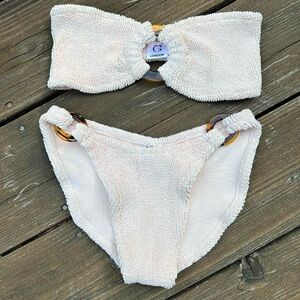 Hunza G Gloria Cream Textured Bandeau Bikini