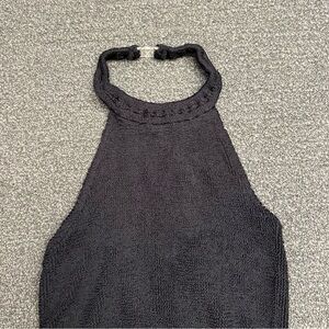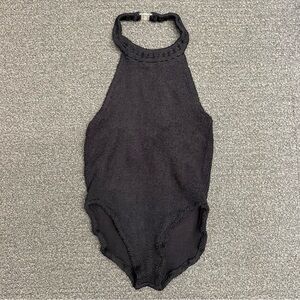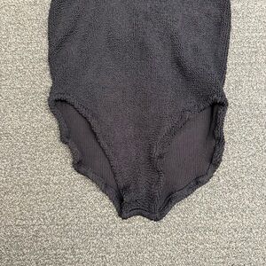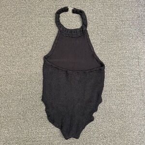 Hunza G Halter Neck One Piece in Black - Back of Neck Clip Closure - Open Upper Back - Moderate Coverage - Crinkle Fabric - One Size