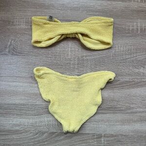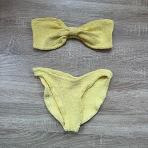 Hunza G Jean Bikini Set Yellow Swim Crinkle Two Piece Top Strapless Bandeau