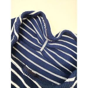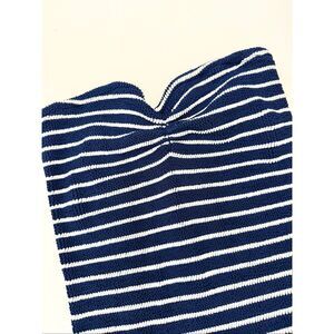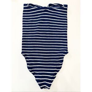 Hunza G Navy Blue Brooke Striped Crinkle Swimsuit One Piece One Size Strapless