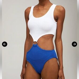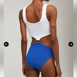 Hunza G Pretty Woman Cutout Two-tone Seersucker Swimsuit Royal Blue White Silver