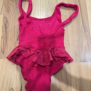 Worn once! In great condition. Chic red swimsuit with playful ruffle detail. Perfect for a stylish beach day.
