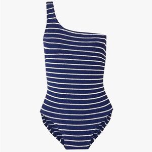 Hunza G Swimsuit Nancy Seersucker Striped Navy Blue White One Shoulder Size