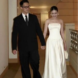 Beautiful dress for rehearsal dinner. NEVER BEEN WORN. Going to be too cold for mine to wear it, but I love it. It's from The Labera on Etsy, but is the same seller as on Houng Boutique. GORGEOUS! Such great quality. It costs a lot to return to Vietnam so would love for some other bride to have it!!