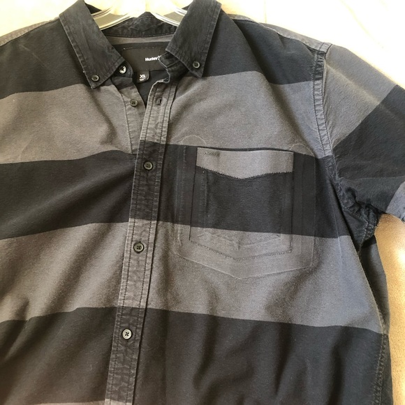 Hurley button down shirt, black and grey stripes. Used but still in good condition.