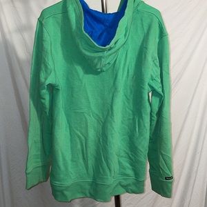 This listing is for a used jacket. Small candy chocolate stain can come out with wash.