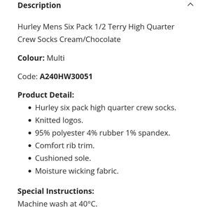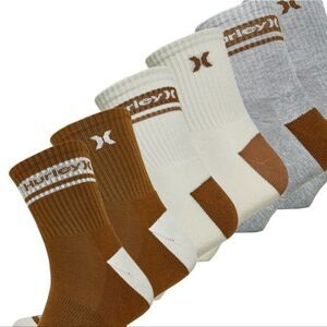Hurley 6-PK 1/2 Terry High Quarter Crew Socks- Chocolate/Cream