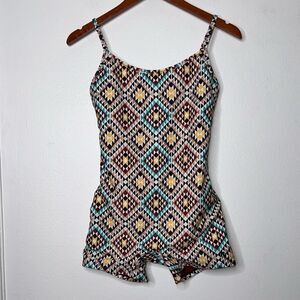 Hurley Aztec Pattern One Piece Short Swimsuit Size Small