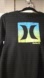 Stylish black long sleeve with iconic blue and yellow Hurley logo.